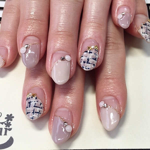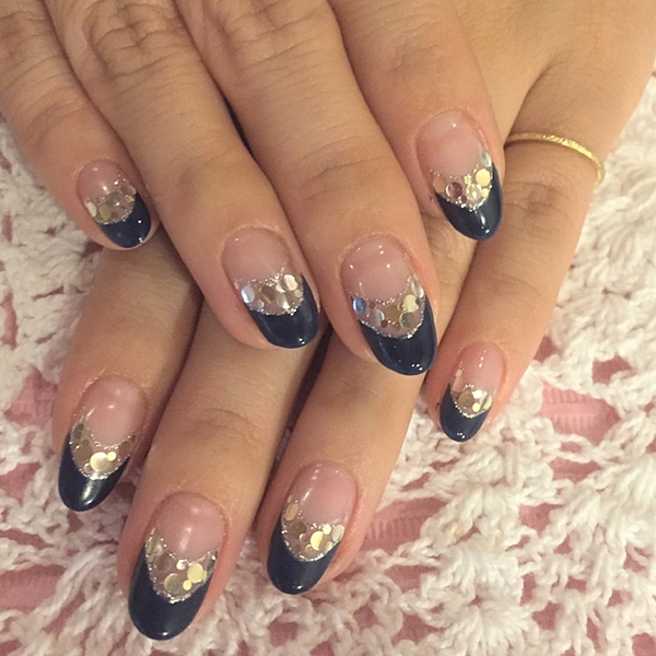 ネイビーベースにはストーンをのせて華やかさをプラスして・・