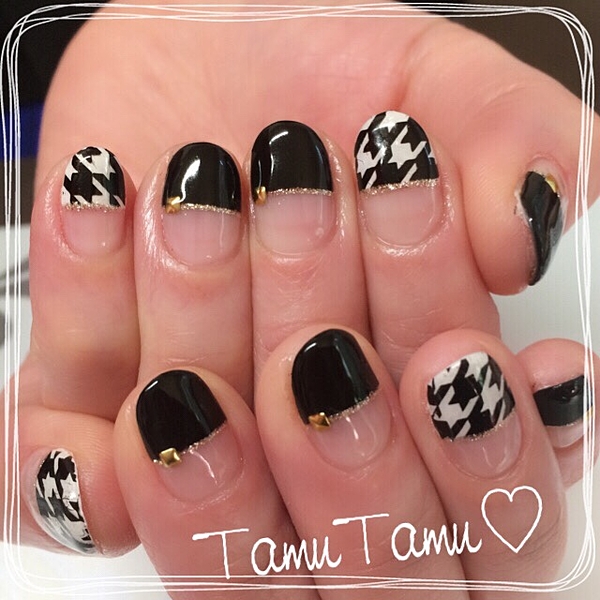 ブラックとホワイトの逆フレンチが大人っぽい・・♡