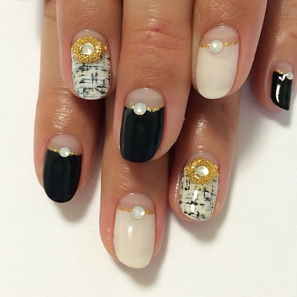 モノトーンには、クリアストーンとゴールドスタッズが映えますね♡