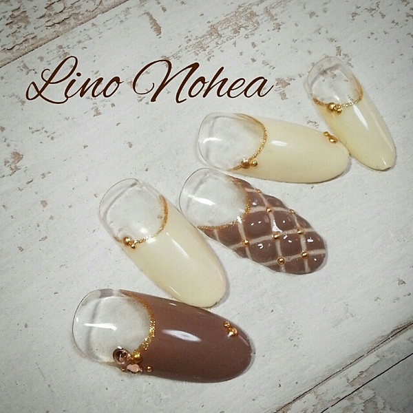 ホワイトパールもかわいいけど、ブラウン系に変えるだけで落ち着いた印象のオシャレネイルに♡