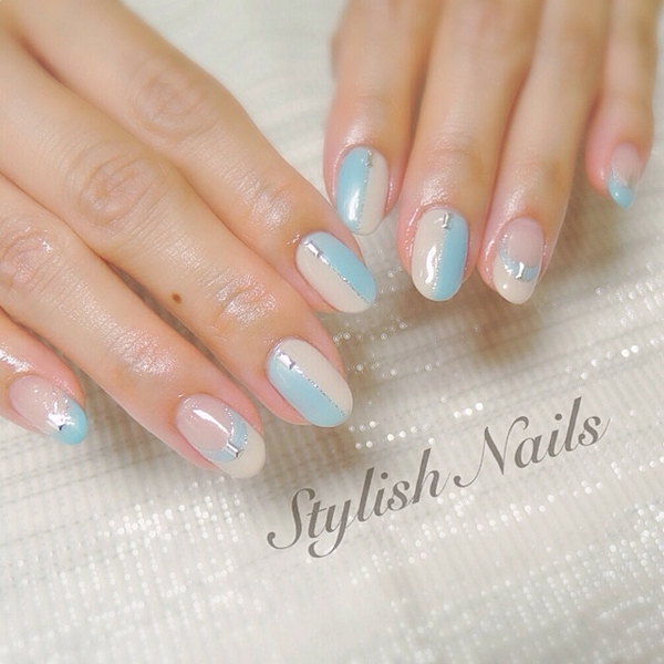 シャンパンとサイダーが混ざったような上品なネイル♭