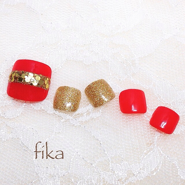 ゴールドをベースにしているので、とってもゴージャスな足元になりますね♡