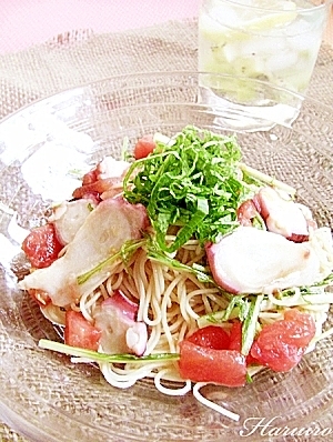 ■夏に嬉しい☆タコと水菜の冷製パスタ