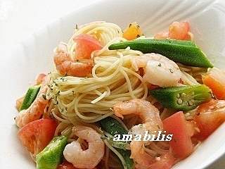 ■和風でさっぱり♪オクラと梅の塩昆布冷製パスタ☆