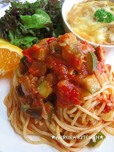 ■簡単美味☆とろっナスとトマトの冷製パスタ