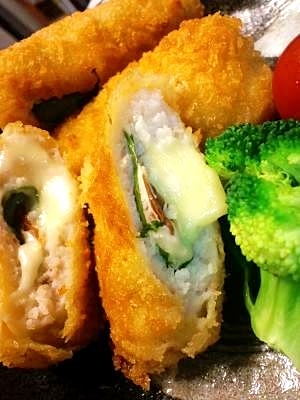あっさり淡白な白身魚でチーズと大葉を巻いてフライにすることでメインにもなるボリュームたっぷりな一品に。