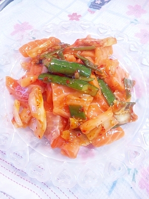 楽天レシピ:「トウラウトサーモンのお好きなキムチ和え(^_-) 」より
