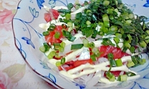 楽天レシピ:「お刺身サーモンと新玉ねぎのサラダ♪ 」より
