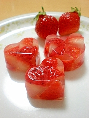 楽天レシピ:「赤ちゃんのおやつ・デザートに♪イチゴの寒天ゼリー♪ 」より