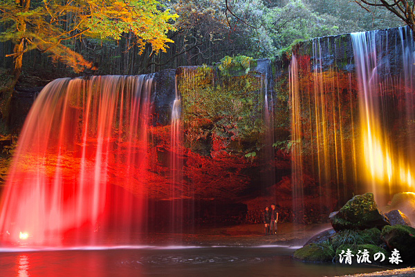 滝が裏側からライトアップされます。