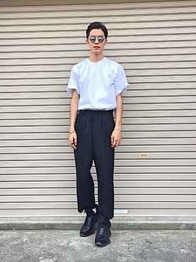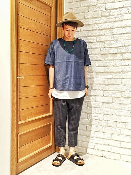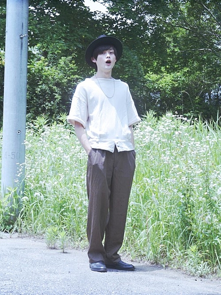 ラフな七分丈のパンツにゆったりしたTシャツ、