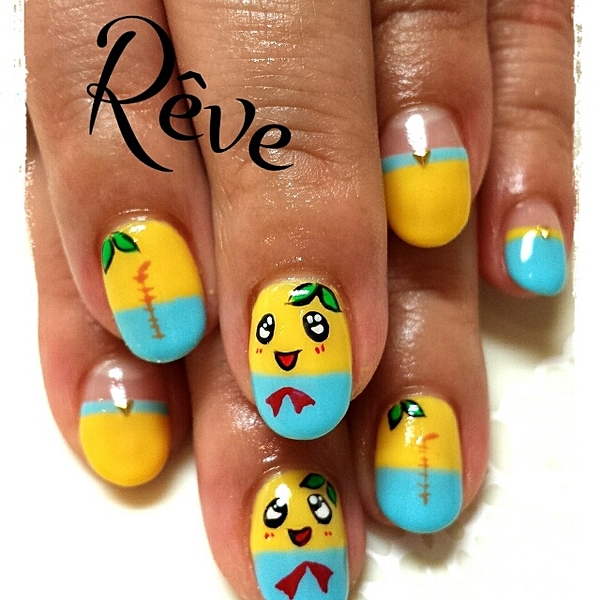 イエローとブルーを使うだけで、ふなっしーネイルになっちゃいます♪