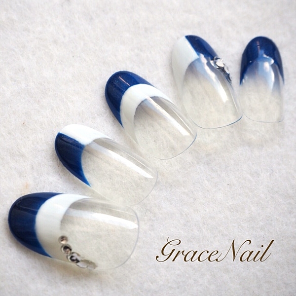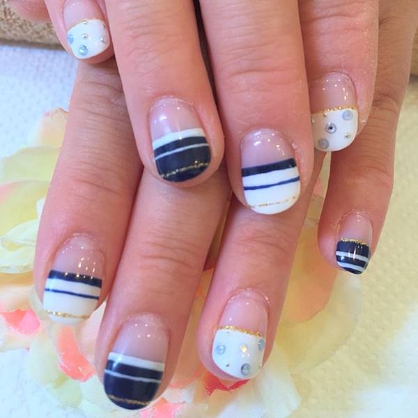 ホワイトの逆フレンチにネイビーのラインをプラス♪これだけでも新鮮ですね!