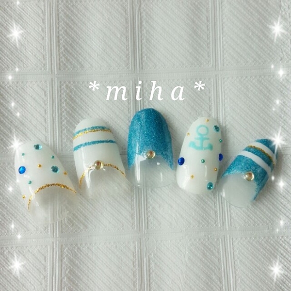 ツイード柄もカラーやストーンとの組み合わせで、マリンっぽく出来ちゃいます♪