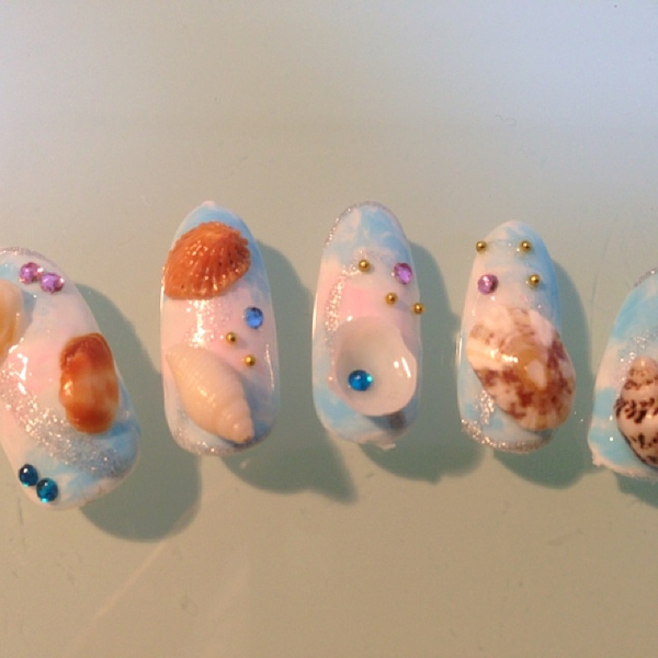 夏マーブル 貝殻ネイル #ネイル#ネイルチップ#ネイルデザイン#ネイルアート#夏カラー#マーブル#海#貝殻#ジルズネイル#ネイルチップ販売#オーバルネイル#ちび #ネイルサロン#nail#nailart#polish#blue… http://t.co/URA4KOlqYb