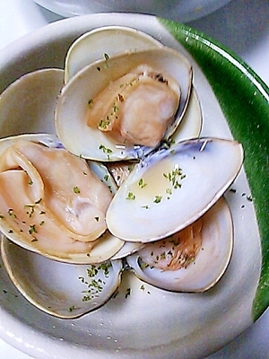 楽天レシピ:「絶品!☆ハマグリのにんにく白ワイン蒸し☆ 」より