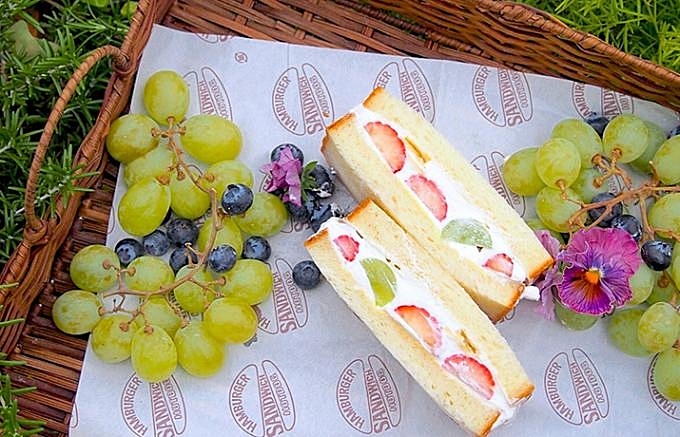 ふわっふわの豆乳食パンに、季節のフルーツと濃厚な豆乳クリームがたっぷりはさまった、サンドイッチ♪