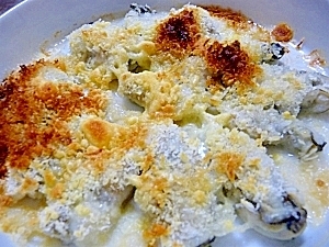 楽天レシピ:「レンジでホワイトソース 牡蠣のグラタン 」より
