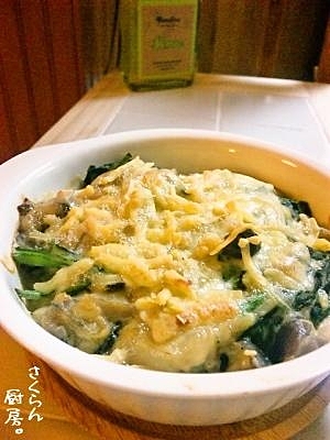楽天レシピ:「アツアツ!牡蠣とほうれん草のグラタン 」より