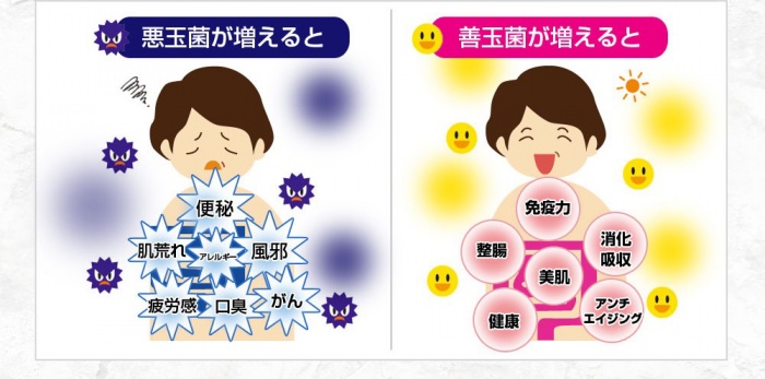 善玉菌:悪玉菌=2:1の割合で存在するような状況が良い状態。