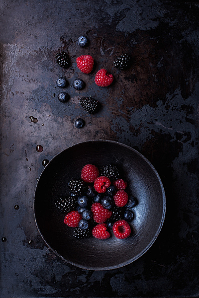暗い色合いのフルーツを盛りつけると少しモダンな雰囲気に!