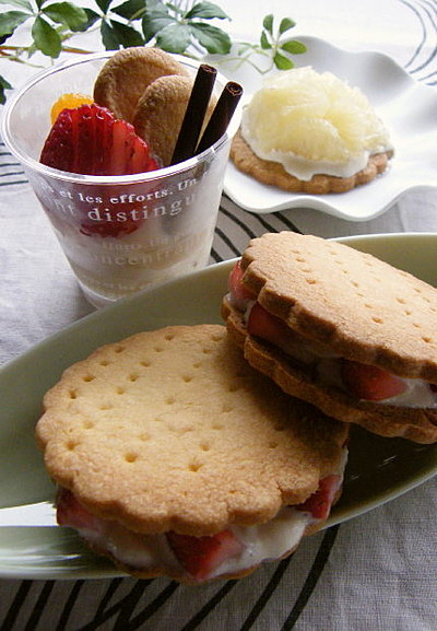 楽天レシピ:「残った生クリームでクッキーサンドアイス 」より