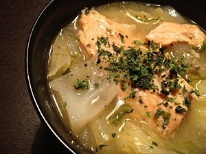 ■鮭と新玉ねぎの味噌バタースープ