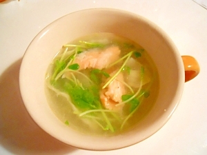 楽天レシピ:「ウェイパーで☆鮭アラとキャベツ&豆苗 スープ 」より