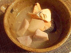 圧力鍋で鮭あらスープ♪ 大根&里芋