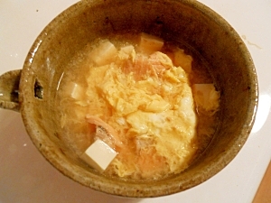 ■鮭あら&豆腐&たまご ウェイパーで味噌スープ