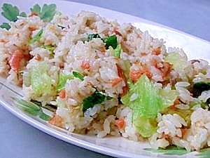 ■我が家の定番~鮭レタスチャーハン♪