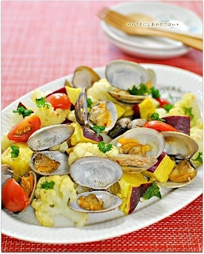 ■さつま芋カリフラワーあさりのバター酒蒸し