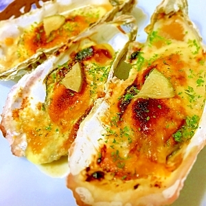 楽天レシピ:「レンジで楽チン♪殻付き牡蠣のチーズ焼き 」より