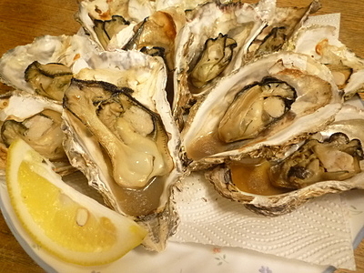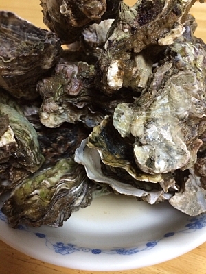 殻付き牡蠣が売っていたので、フライパンで蒸し焼きにした。ちょっと加熱しすぎたけれど、おいしかった!殻もいつもよりうまく外せた。