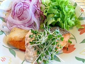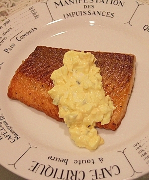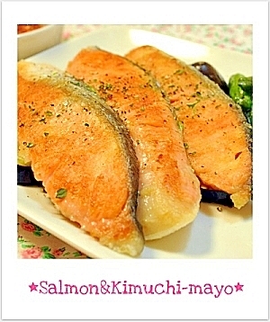 楽天レシピ:「☆サーモンのムニエル キムチーズマヨソースで☆ 」より
