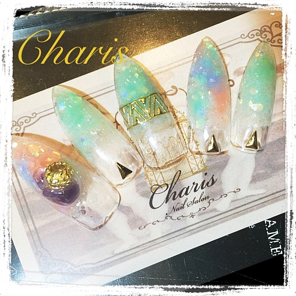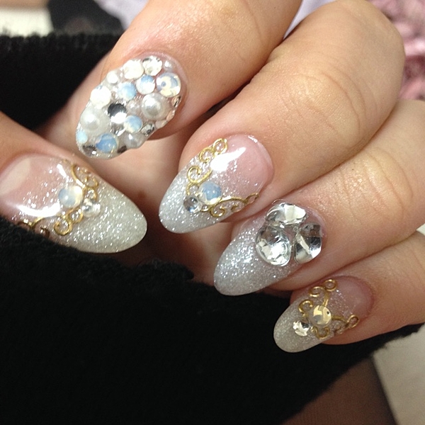 ラメと近い色の3Dをおくことで10本に、3Dをおいても、しつこさを感じず、春らしい可愛いネイルって感じ♡⁈ http://t.co/ettWvJNdfA
