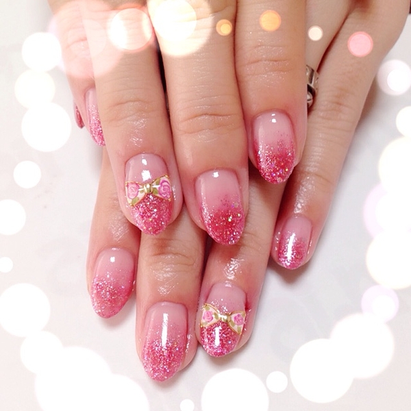 仕事終わってネイルしてもらって帰宅。ピンクのラメグラデーション✨えだのお友達さんにしてもらったぜ http://t.co/D4mJ1M5ecB