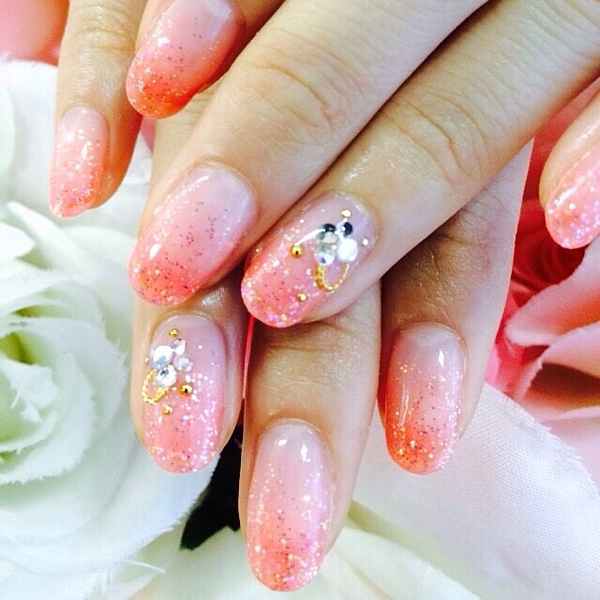 パールの下地にピンクのグラデはとってもカワイイ組み合わせ♡