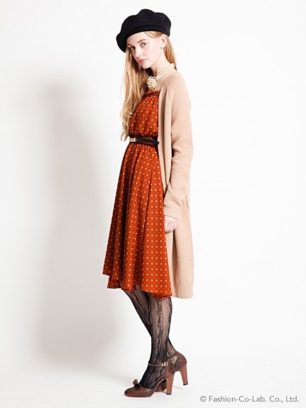 レトロカラーにドット柄のシックなワンピース。