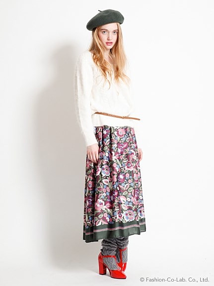 クラシカルな柄のフラワースカートを