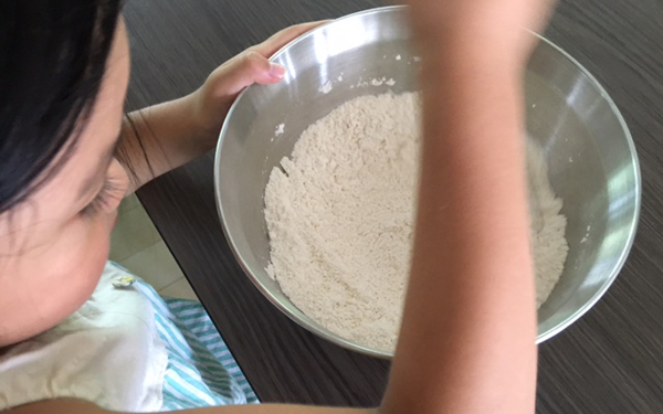1.大きめのボウルに薄力粉を入れる