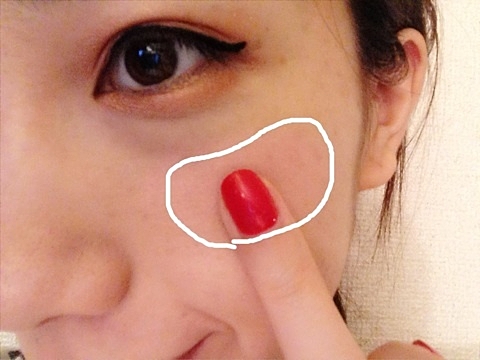 ①フラワーリップクレヨンを、ほっぺに直接塗り塗り。