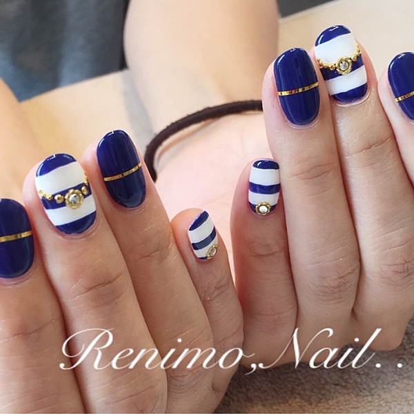 夏になにかと気になる'マリンテイスト'。ファッションでも取り入れたり、小物だってマリンカラーが気になっちゃう♡可愛いのに可愛すぎない、青と白のシンプルなボーダーでつくられたマリンネイルで夏を120%楽しみましょ♭