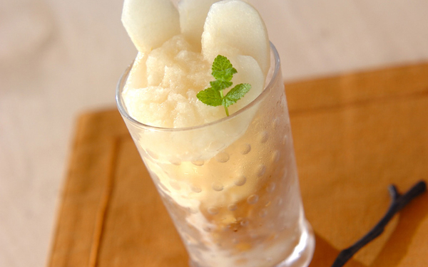 爽やかな梨とホワイトキュラソーの風味が、アイスクリームとも絶妙に絡み合い、おうちスイーツとは思えないリッチさです。