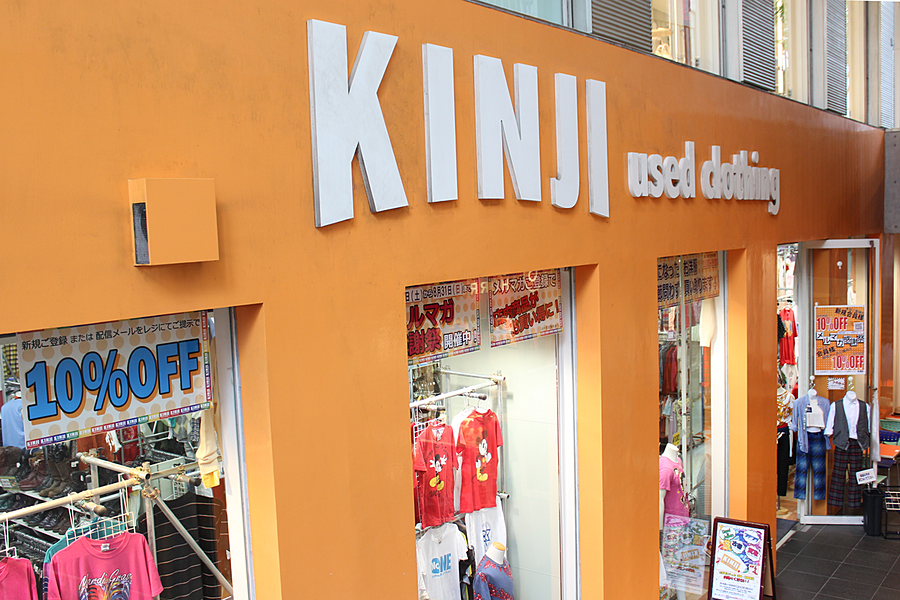 原宿のYMスクエア地下一階にあるKINJIはこのオレンジと白のロゴが目印!おトクに素敵なお洋服をゲットしたいなら絶対KINJIです。個性的な商品も多く、見ているのがとっても楽しい♪
