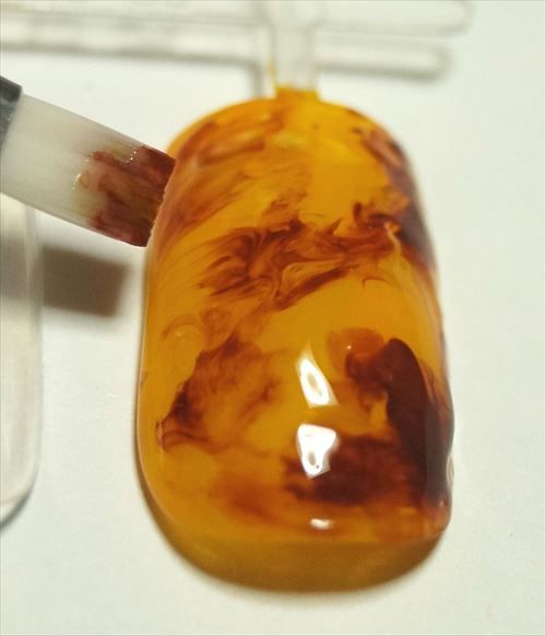 @3zk__ べっ甲ネイルってどういう風にできてるの? 2色混ぜてぐるぐるしてマーブルみたいなやり方でべっ甲になるのか、元からそういう色ができあがってるのかどっち?