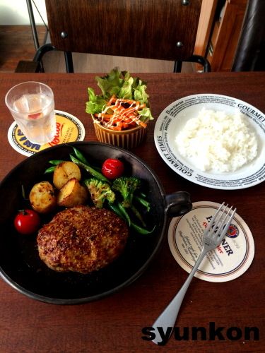 個人的なオススメは、ガーリックメニューのハンバーグ。