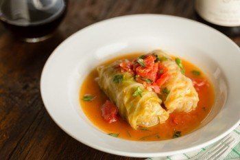 野菜ジュースで煮込んだロールキャベツ。