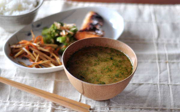 妊娠中、料理をするのがイヤでたまらなくなった時期、外食やテイクアウトが続くのもお腹の子どもによくはないので、なんとか簡単に毎日の料理を済ませられないかを考えていました。そのときに初めて作ったのが、この「青のりの味噌汁」。