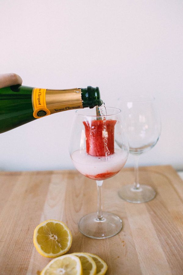 グラスにアイスキャンディーを入れて、カクテルを注ぎます。